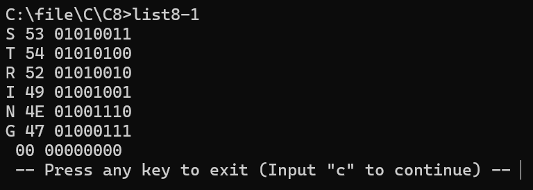 【List 8-1】文字列をダンプ解析する(str_dump.c)