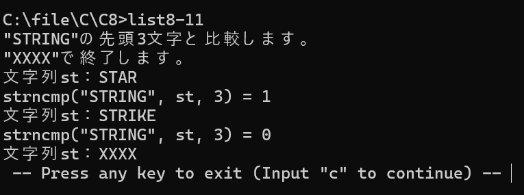 【List 8-11】先頭n文字の比較(strncmp_test.c)